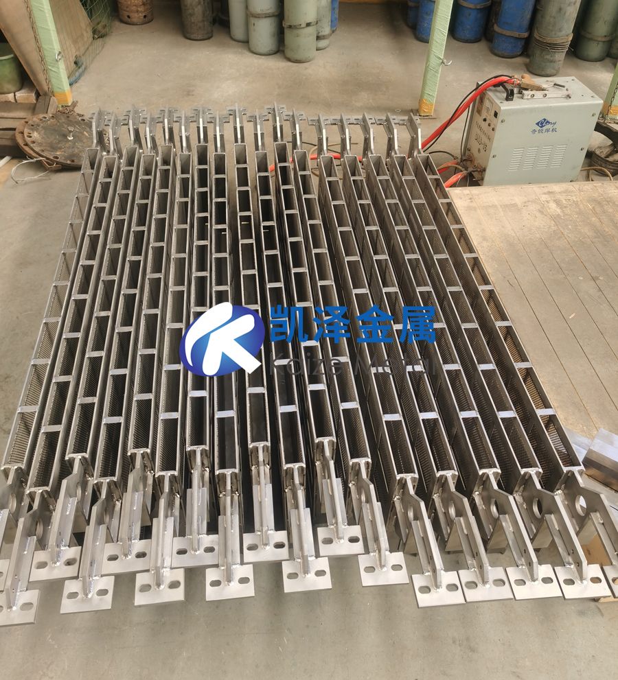 鈦籃由鈦框板和鈦網掛鉤三部分構成。