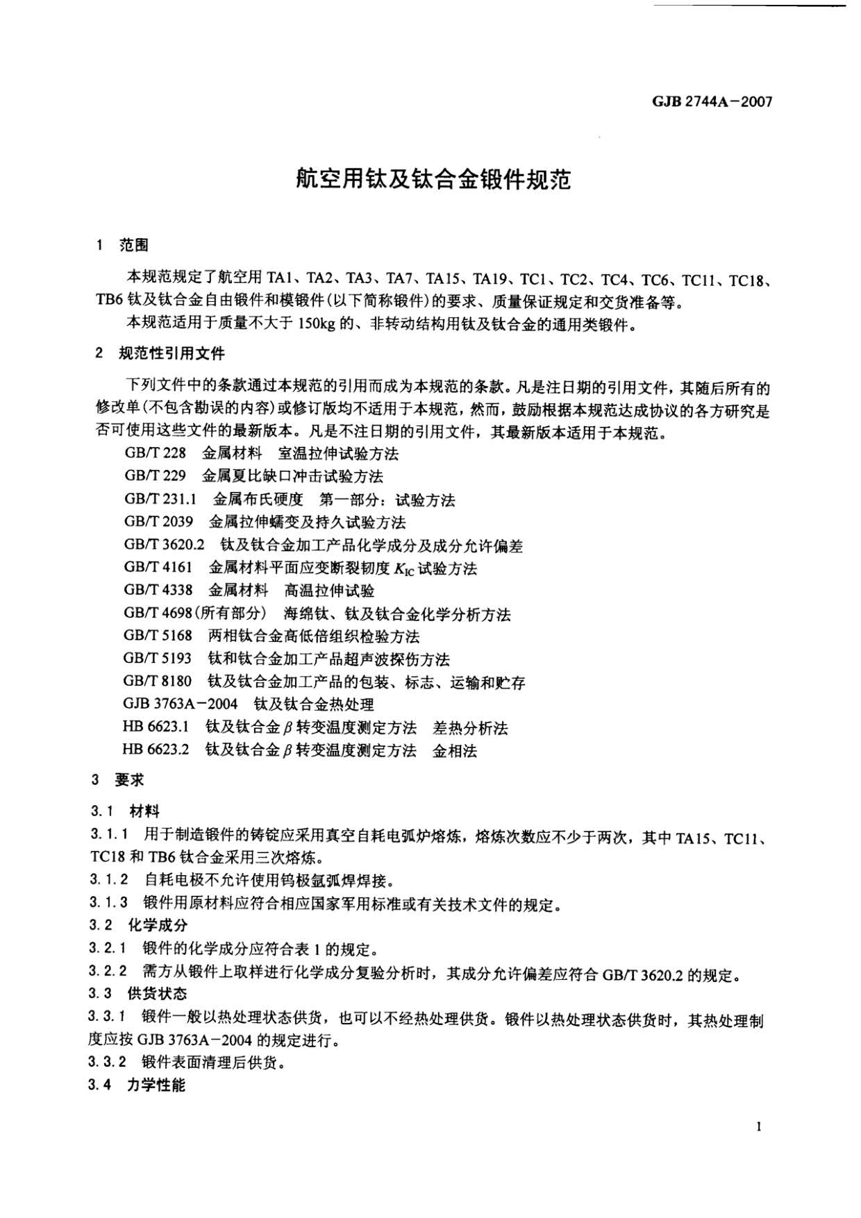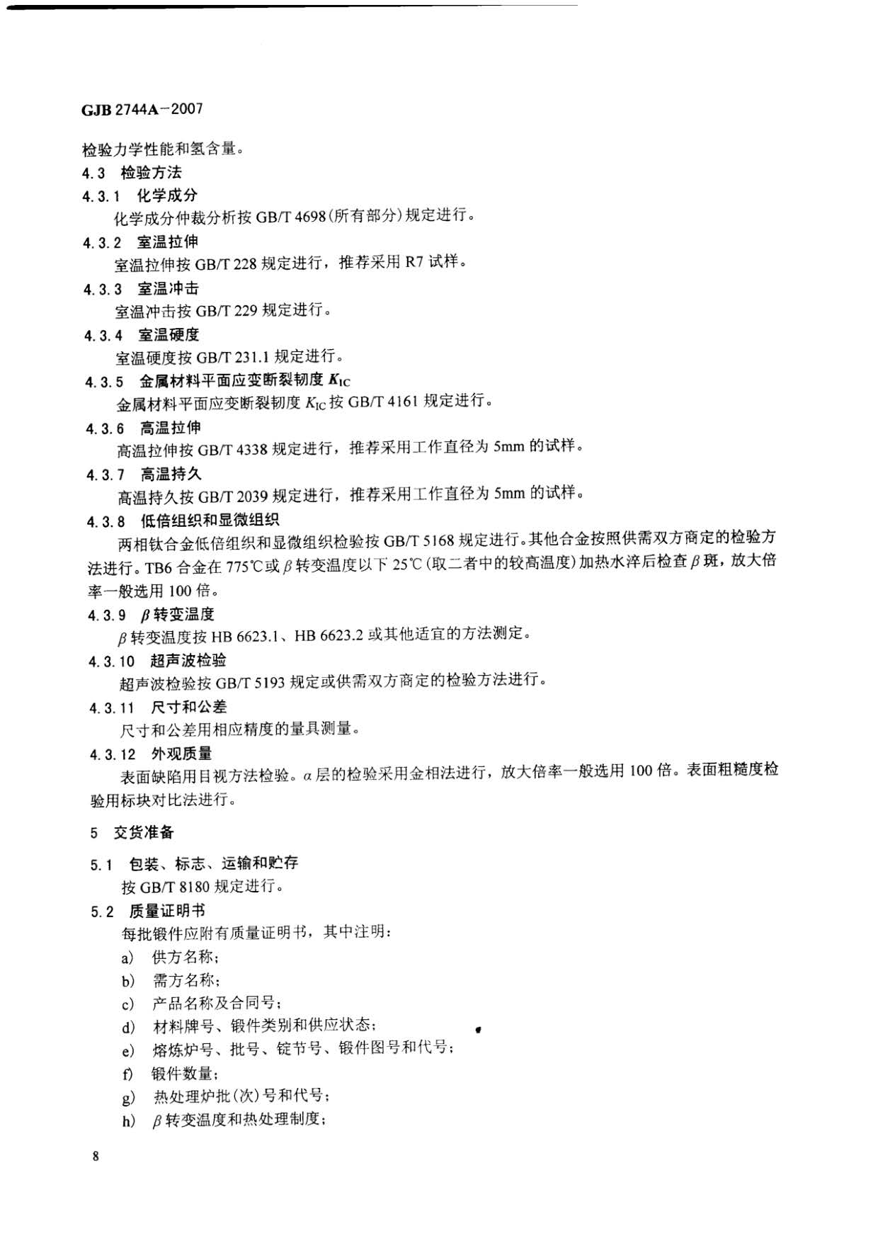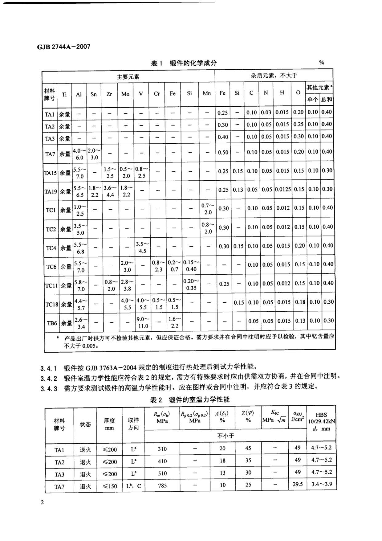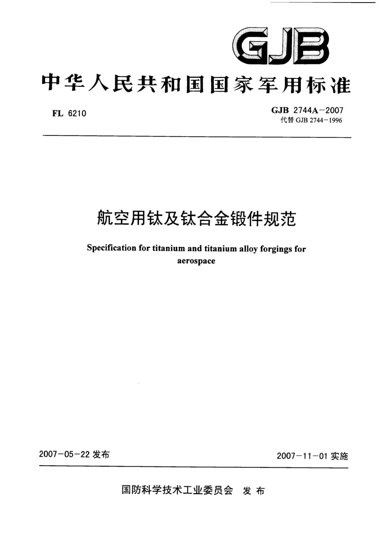 國軍標(biāo)航空用鈦及鈦合金鍛件規(guī)范 GJB 2744A-2007